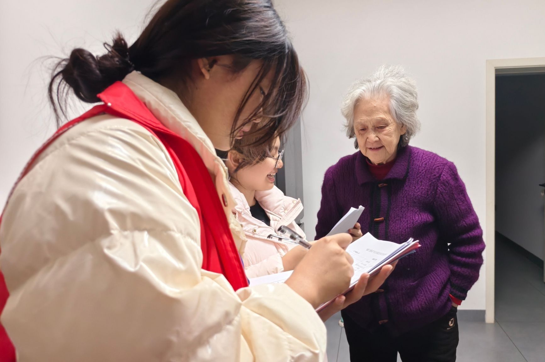 (本网讯)为切实铸牢社区安全防线,传递对特殊群体的关怀与温暖,12月3日下午,经济地理学院青年志愿者协会组织14名志愿者,在长沙市开福区精英路社区党群服务中心开展“青春敲门”入户安全宣传志愿服务活动,以实际行动诠释志愿精神,为社区居民送上“安全大礼包”。