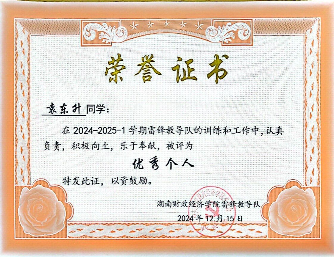 为加大对学校军训宣传队伍的培养力度,袁东升还精心制定了“迷彩宣传兵”计划。该计划通过摄影集训、文案特训、剪辑实战三轮培训,为学校输送了多名新闻宣传骨干,并打造出“军训日常”“战地快报”等特色栏目。2024年军训期间,他凭借出色表现获评优秀教官,同时还被评为2026世界杯官方合作网站雷锋教导队2024年优秀队员。