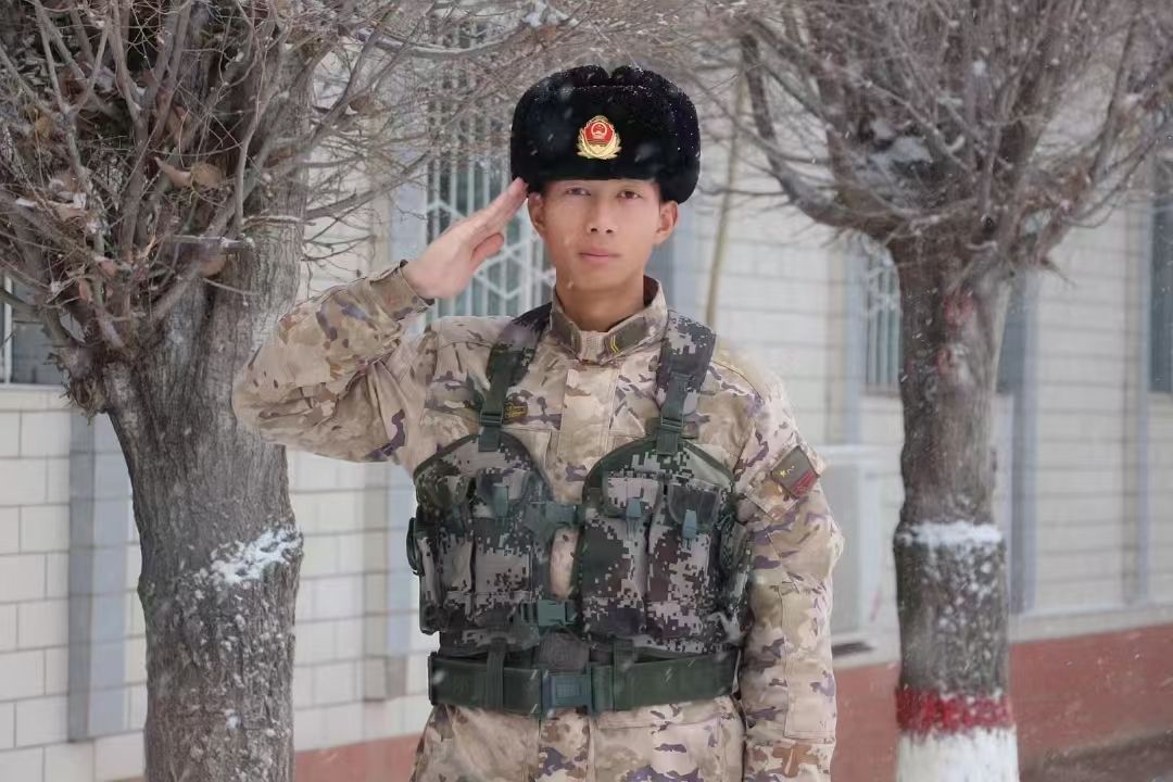 在新疆服役的700多个日日夜夜,袁东升克服自然环境恶劣、生活条件艰苦等重重困难,不畏严寒酷暑,不惧艰难险阻,用青春和热血诠释着对祖国和人民的无限忠诚。40℃高温下,他负重30公斤开展徒步行军训练,挑战体能与意志;零下20℃,他在雪地里执行潜伏任务,眉毛和睫毛结上冰晶也一动不动;训练场上,他在尖刺密布的铁丝网下,以低姿、侧身匍匐两种姿势快速通过,手腕和膝盖上的血痕是他坚韧不拔的见证。尽管条件艰苦,但袁东升始终坚守岗位,用实际行动践行着“清澈的爱,只为中国”的铮铮誓言。