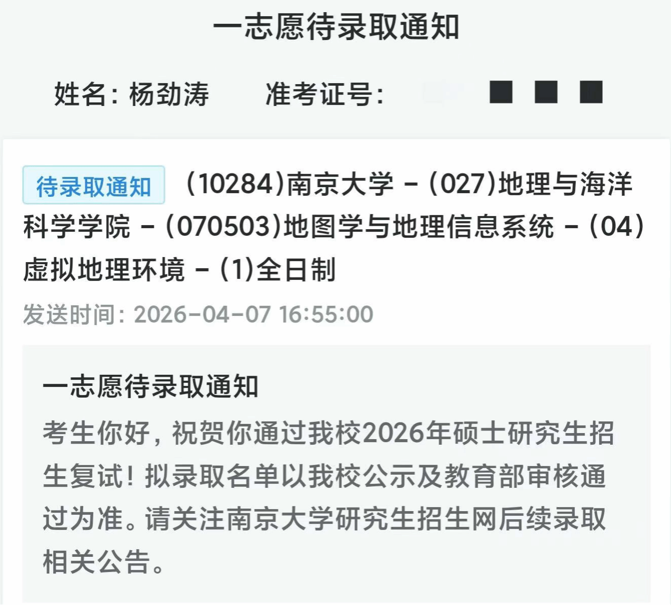 功夫不负有心人,他成功考取了南京大学硕士研究生,实现了从西部热土到学术殿堂的跨越。从服务边疆的志愿者到即将踏入校园的准研究生,他用奋斗证明:奉献与追梦从来不是单选题,在扎根基层的坚守中,同样能浇灌出理想的花朵。