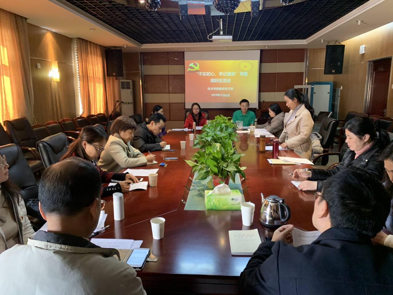 12月6日下午3点,经济学教工党支部全体教师党员在办公楼1014会议室召开“不忘初心、牢记使命”专题组织生活会和民主评议党员会议,学校党委委员、纪委书记李雪山、纪委副书记卿文洁出席会议并进行指导,会议由支部书记陈素琼主持。