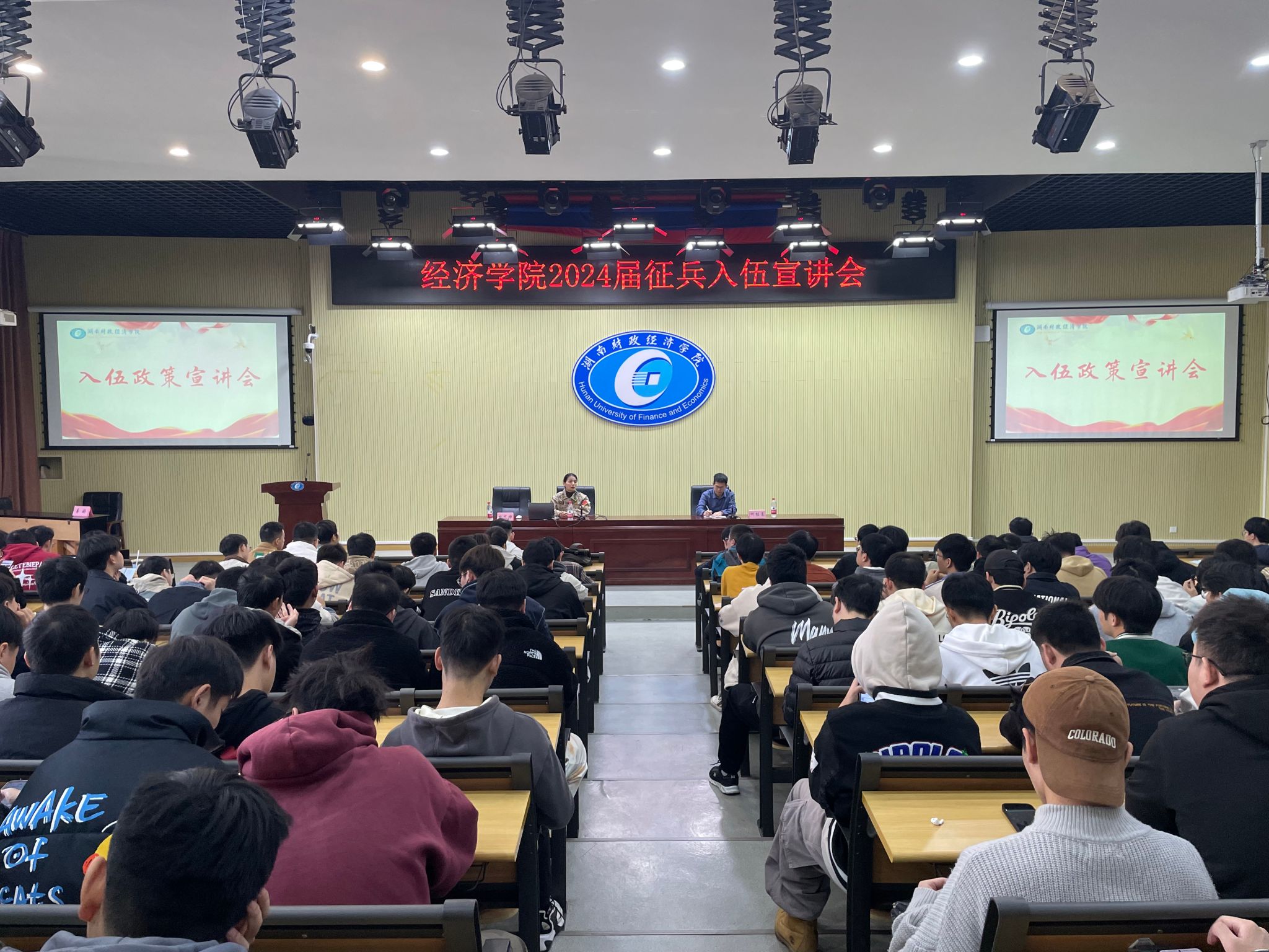 (本网讯)为深入贯彻落实征兵宣传政策,鼓励和引导大学生积极应征入伍,11月14日下午,经济学院于2j03举办2024届征兵入伍宣讲会。此次宣讲会由学生处武装部熊子悦老师主讲,经济学院共100余人参加本次会议。