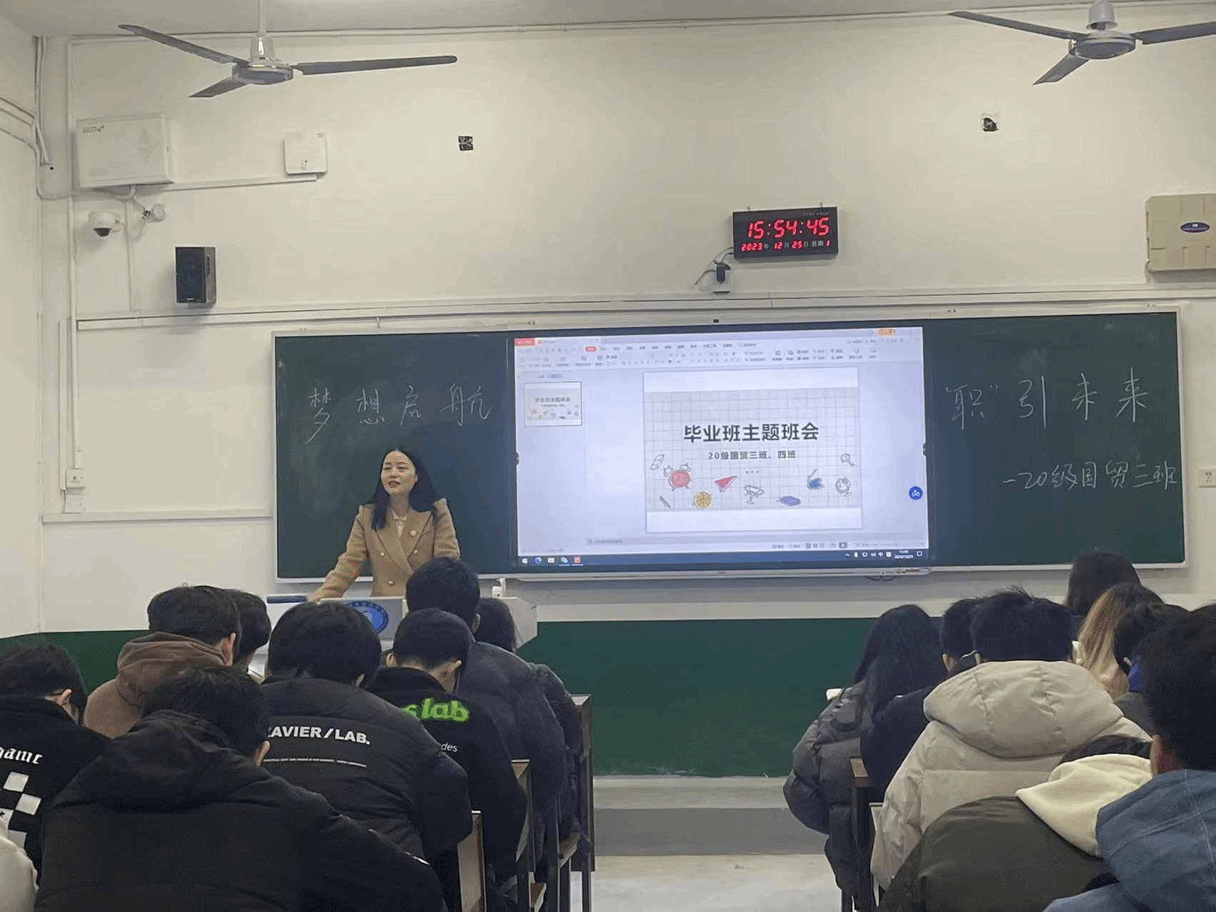 (本网讯)为帮助2024届毕业生了解就业流程、规避求职风险,2023年12月25日晚,院党委书记余华为20级国贸三、四班毕业生进行了就业政策宣讲。