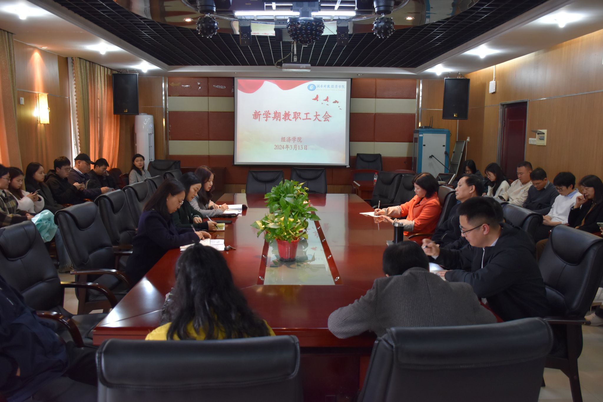 (本网讯)3月13日下午,经济学院在办公楼1014会议室召开新学期教职工大会,学院领导班子成员、全体教职工参加了会议,副院长陈雯主持会议。