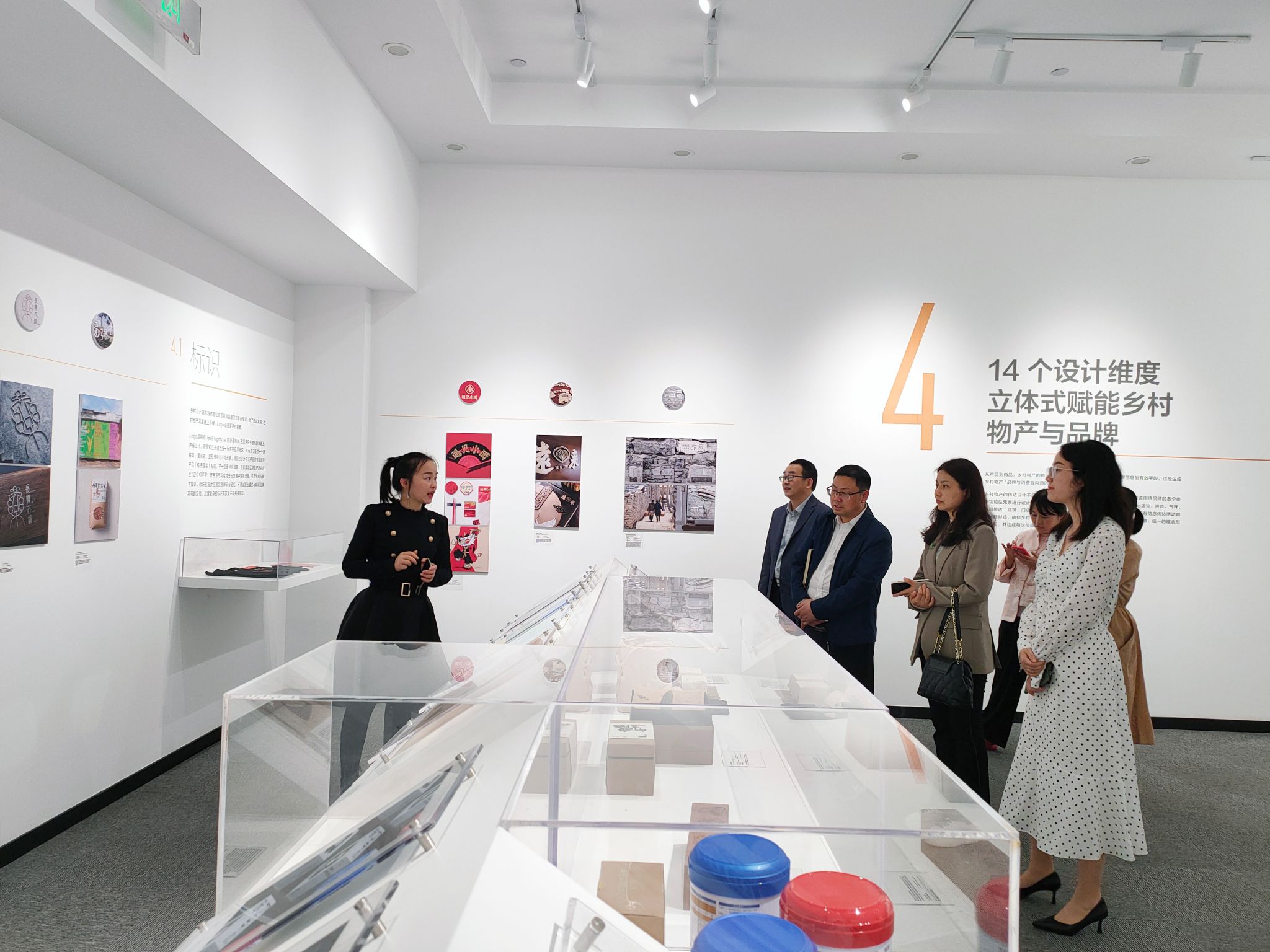 尹向飞、陈雯一行首先参观了中国一乡一品乡村振兴设计展,该展以“文化赋能,乡村振兴”为主题,以创意设计为窗口,面向世界讲述当代中国“乡村振兴”故事,让源自中国的一乡一品产品走向世界。