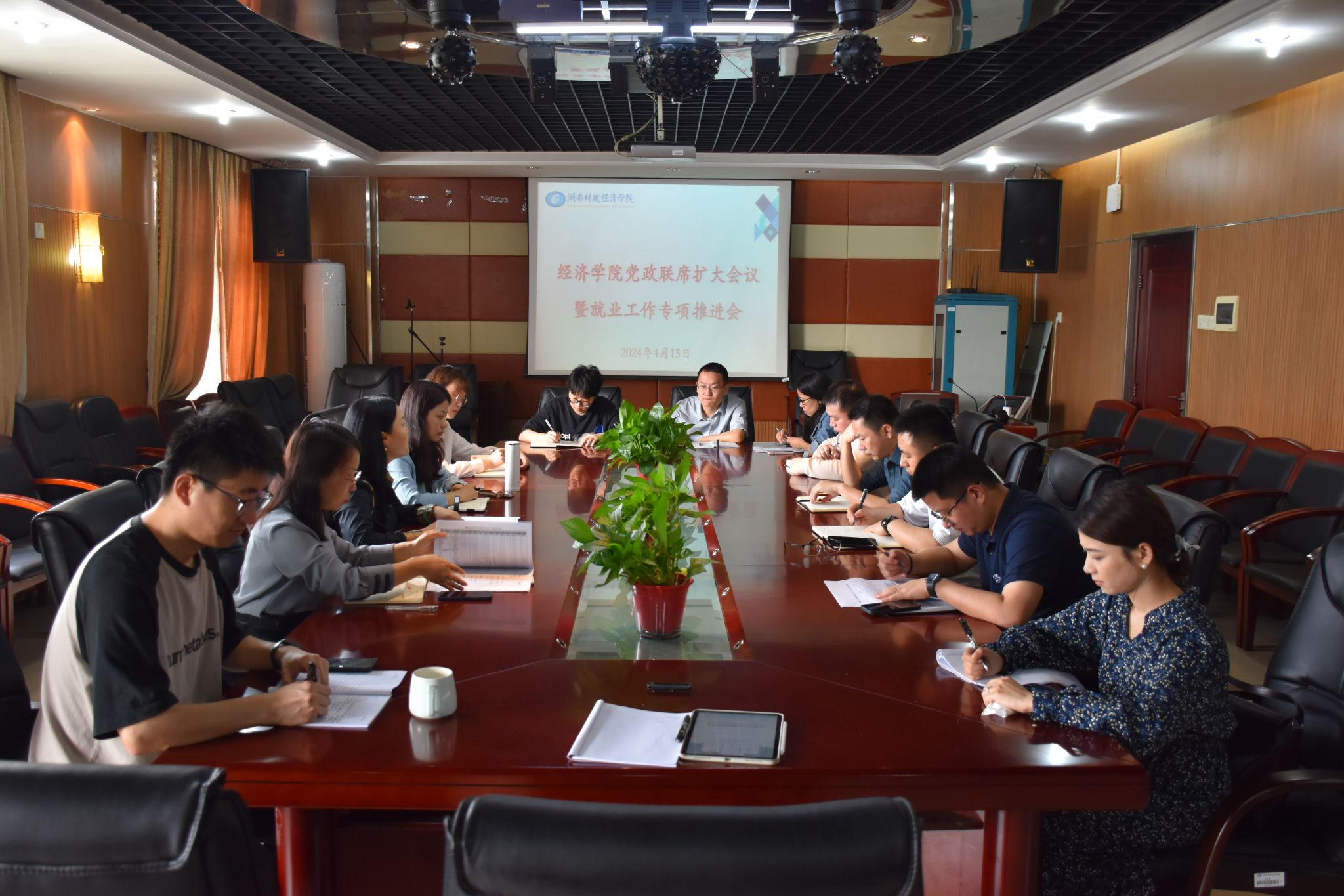 (本网讯)为进一步明确任务、强化责任,推动2024届毕业生就业工作部署落实,助力学院毕业生实现更加充分、更高质量的就业,4月15日,经济学院于办公楼1014会议室召开2024届毕业生就业工作专项推进会。会议由院党委书记余华主持,学院党政班子成员、三办主任,各系主任及毕业班辅导员参加会议。