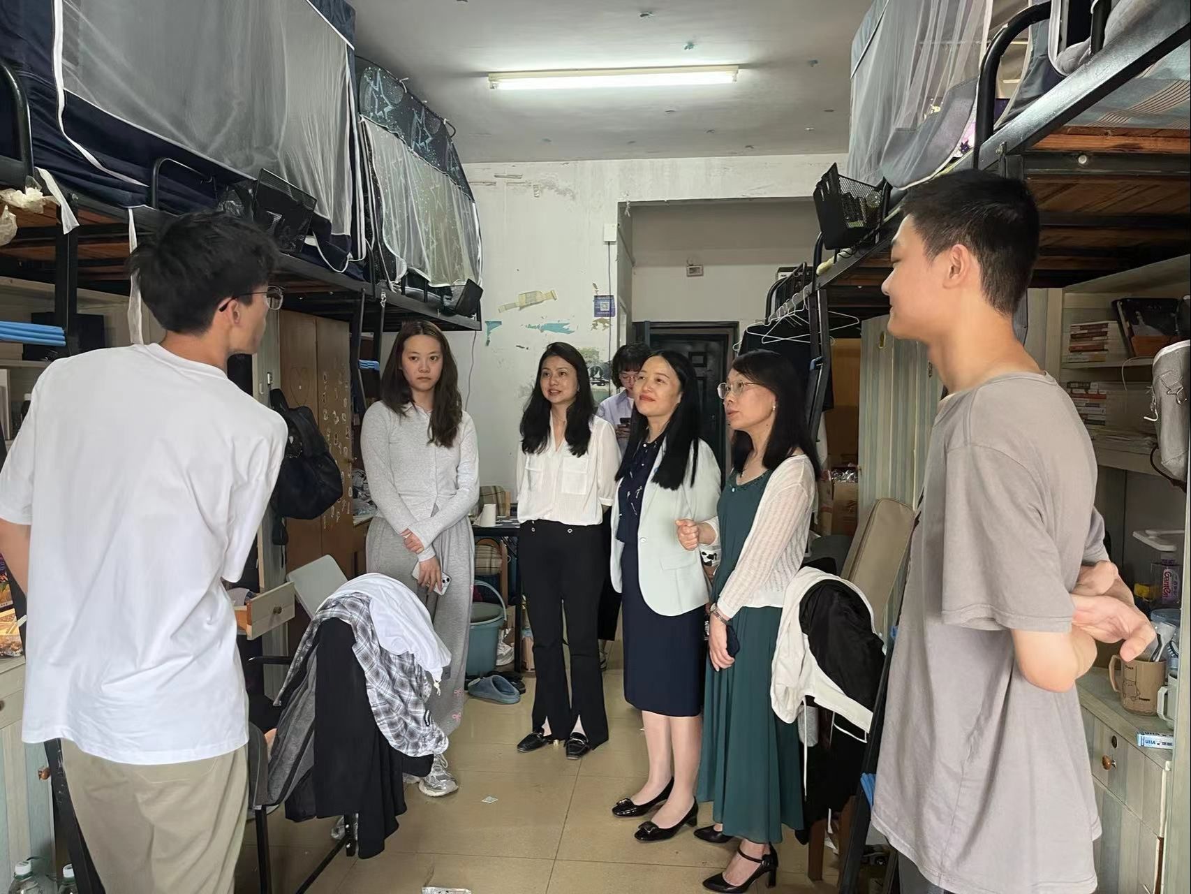(本网讯)为进一步做好毕业生离校前管理与教育,深入了解毕业生的思想动态、生活状态以及困难需求,提高学生的安全意识,5月13日下午,经济学院党政班子和全体辅导员一起深入毕业生宿舍,实地了解毕业生离校前的学习生活情况,为即将离校学生送去关怀和问候。
