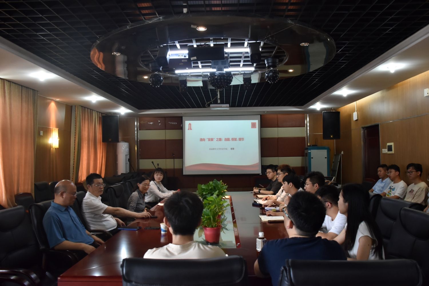 讲座结束后,在场师生就论文选题、期刊投稿等问题与两位教授进行深入交流。刘长庚校长对本次讲座进行了总结,并表达了对李萍教授和毛中根教授的感谢。