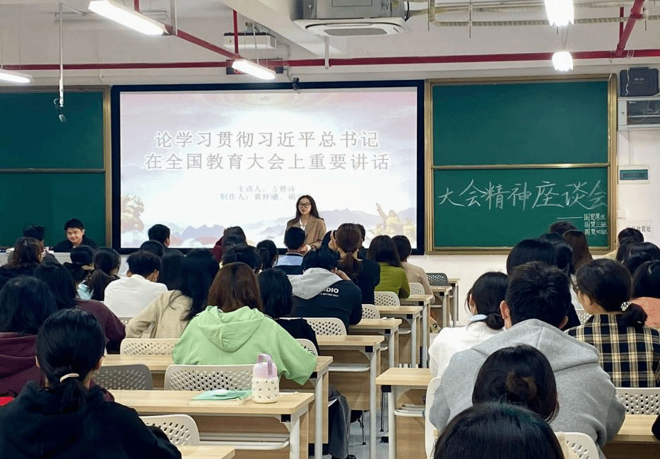 学院党政领导班子高度重视此次学习活动,院党委书记余华、副书记刘英、副院长陈雯、副院长彭千芮分别深入各班级,围绕教育大会精神的内涵、重要意义以及对教育实践的指导作用进行详细解读,并激励同学们将个人理想与国家发展紧密结合,培养深厚的社会责任感和家国情怀。在以 “筑梦教育新篇章,共话教育大会精神” 为主题的班会上,同学们积极参与讨论,纷纷畅谈自己的理想职业、人生目标以及为实现理想所制定的计划,现场气氛热烈。
