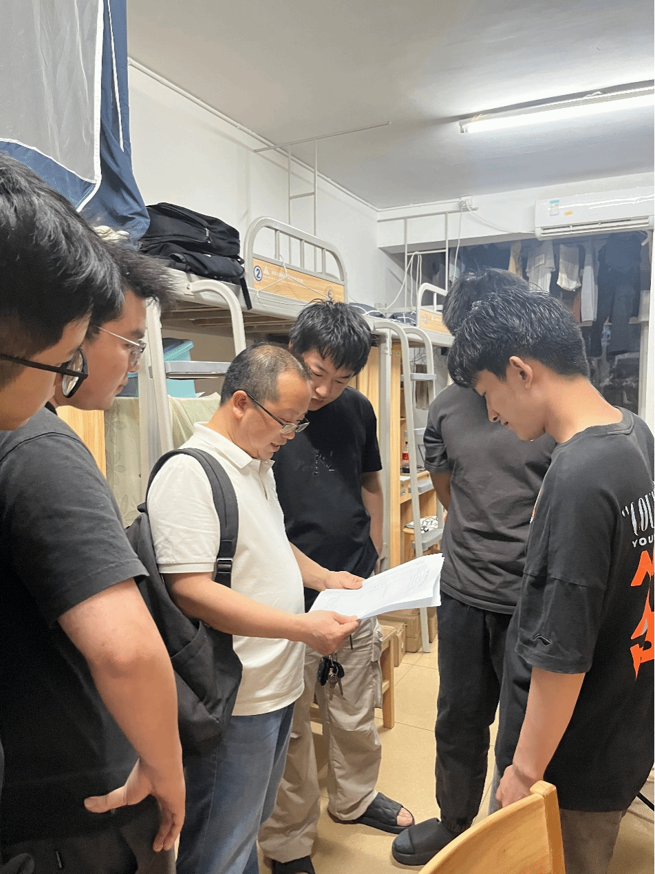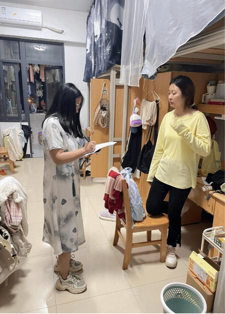 在交谈过程中,各位老师检查了宿舍卫生、安全等情况,认真听取和详细记录了学生的反馈建议。针对大四学生,及时发现并解决学生在应聘与毕业论文写作过程中的思想、心理等方面存在的问题。