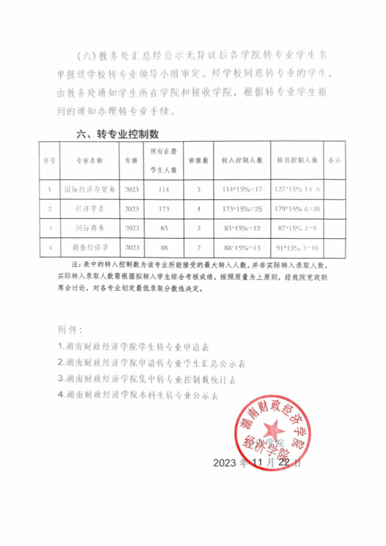 (一)2023年11月24日,学院向教务处报送转专业工作方案和各专业班级转入转出控制数。