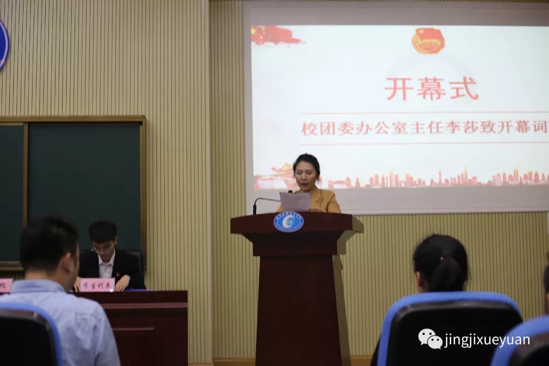 大会在庄严的国歌声中拉开序幕,校团委办公室主任李莎致开幕词。校党委委员、副校长刘茂盛教授对经济学院团学会的成立表示祝贺,并对团学会未来的发展寄予了殷切的期望。经济学院副院长刘乐山希望团学会干部时刻要在学习和工作中起到先锋模范带头作用,以充满激情、富于创造、勇于担当的精神面貌,为建设学院贡献青春力量。