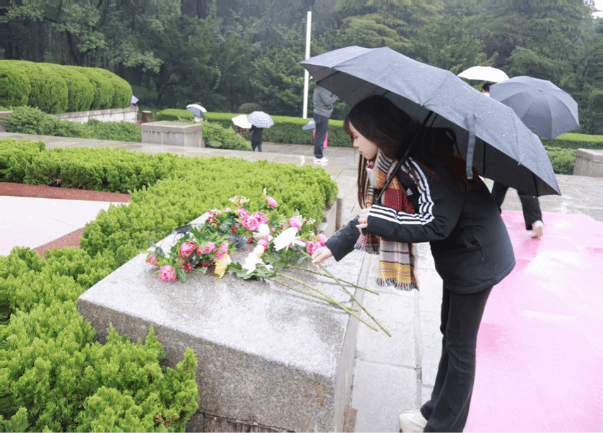 团支书江柯蓉率团员青年在铜像广场集合,列队肃立。在江柯蓉的指引下,全体团员青年拾级而上,于刘少奇同志铜像前,整装敛容,向刘少奇铜像敬献花束、鞠躬敬礼,并围绕铜像仰目瞻仰,表达崇高敬意和无限追思。
