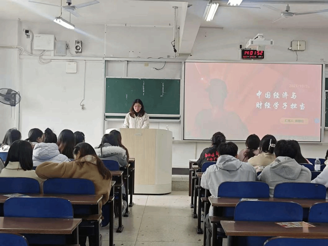 下午14时,活动在第三教学楼3111教室正式启动。主持人李佳阐述了活动背景与核心意义。在党员微宣讲环节,优秀党员代表韩静怡以“经济发展与青年使命”为主题进行宣讲,表明当代青年在国家经济发展进程中的责任与担当。