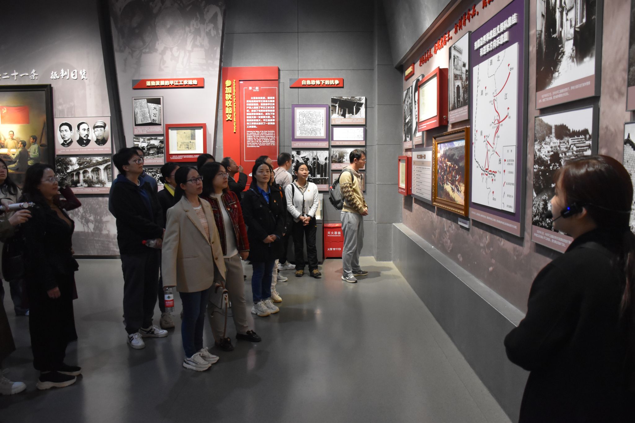 伴着一首首红歌,经济学院教师党员和非党员教师到达平江起义旧址广场前,大家怀着崇敬的心情瞻仰彭德怀将军铜像。接着,党员同志在平江起义史料陈列纪念馆大厅栩栩如生的群雕前重温入党誓词。然后,在讲解员引导下,参观纪念馆各展厅,了解到平江起义是我党武装斗争史上又一次伟大的革命实践,期间红五军的成立,为保卫井冈山革命根据地,建立平江县工农兵苏维埃政府,为中国革命和军队的建设建立了不可磨灭的功勋。平江起义的成功,主要有是中国共产党的领导,也有平江人民不屈不挠的革命斗争精神。全体参与者聆听了一堂生动的微党课,在一幅幅珍贵的图片、一件件有价值的展品中重温那段热血沸腾的历史,追忆当年革命的艰难历程,学习中国共产党人不怕牺牲、艰苦奋斗的革命精神。
