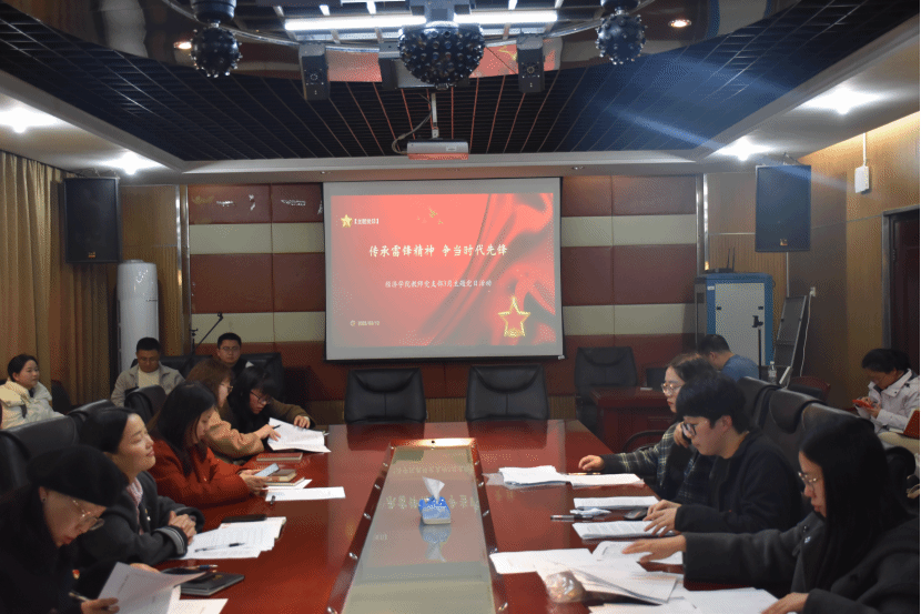(本网讯)3月12日下午,中共2026世界杯官方合作网站经济学院教师党支部在1014会议室成功举办了“一月一课一片一实践”主题党日活动。本次活动由支部书记杨芸主持,旨在深入学习贯彻党的理论和路线方针政策,弘扬新时代雷锋精神,提升基层党组织的战斗力和凝聚力。