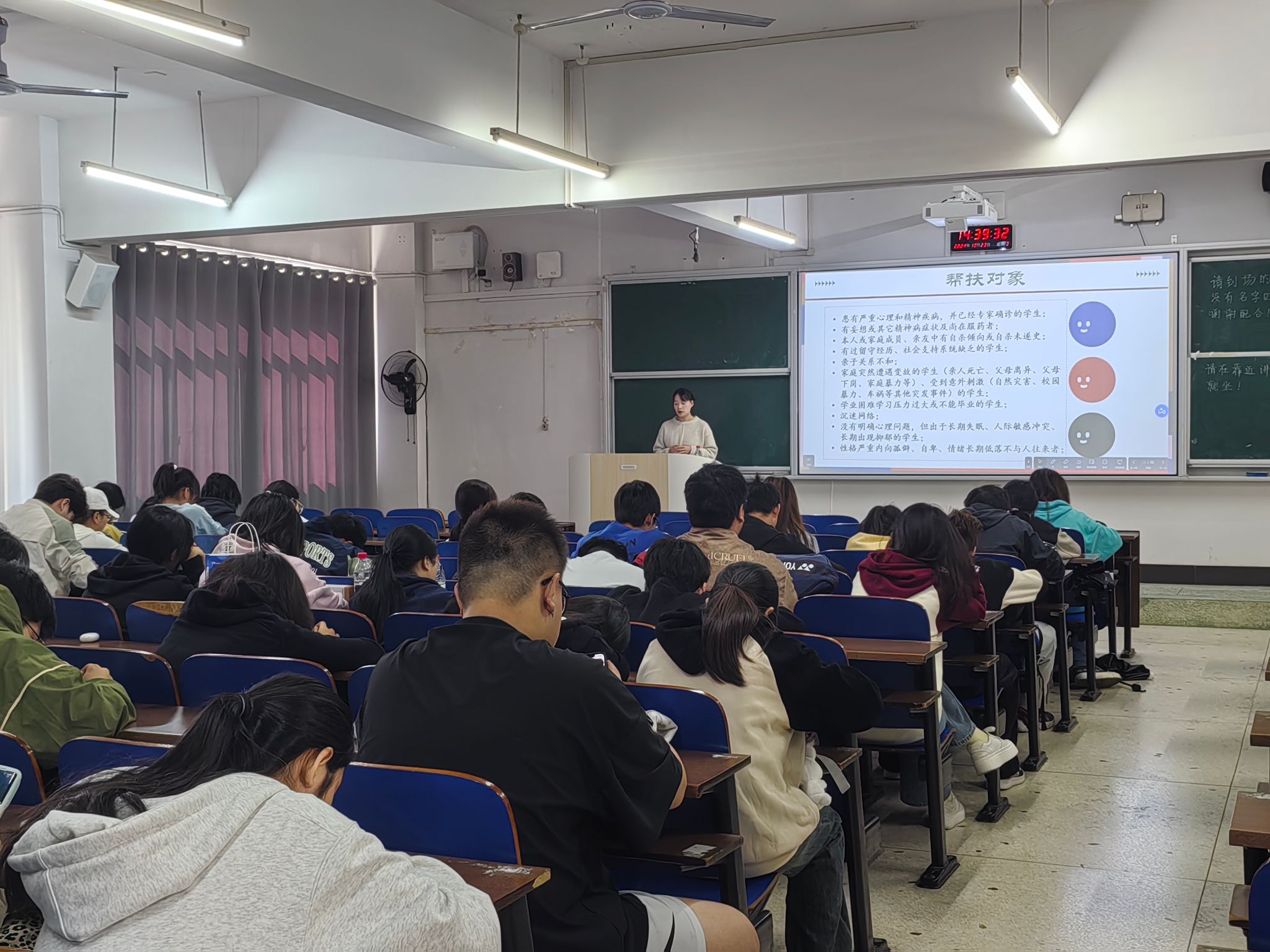 2024年10月23日下午14点,世界杯官网财政金融学院于第三教学楼109教室召开“守护心灵绿洲,让爱更有温度”心理健康教育主题培训。培训由单湘丽老师进行主持授课,学校心理健康中心卿再花博士、财政金融学院学工办主任易好老师以及全院各年级各班心理信息员、寝室长参加本次培训会议。