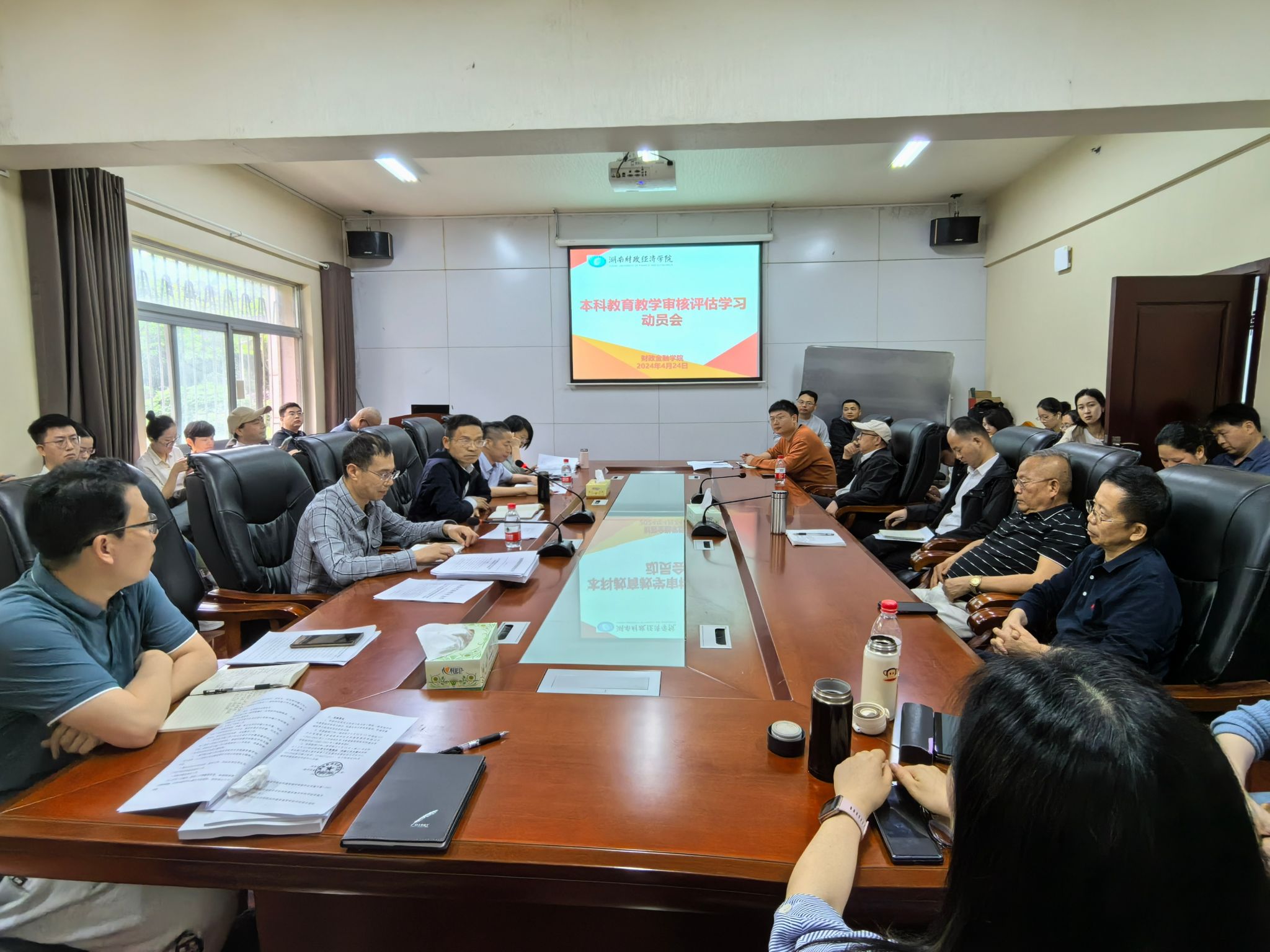 副院长罗四维领学《普通高等学校本科教育教学审核评估实施方案(2021—2025年)》、《湖南省普通高等学校本科教育教学审核评估实施方案(2023-2025年)》。根据学校本科教育教学审核评估工作相关文件的要求,给与会人员讲解本次评估的重要指标。根据指标体系对各项重点工作进行了部署。