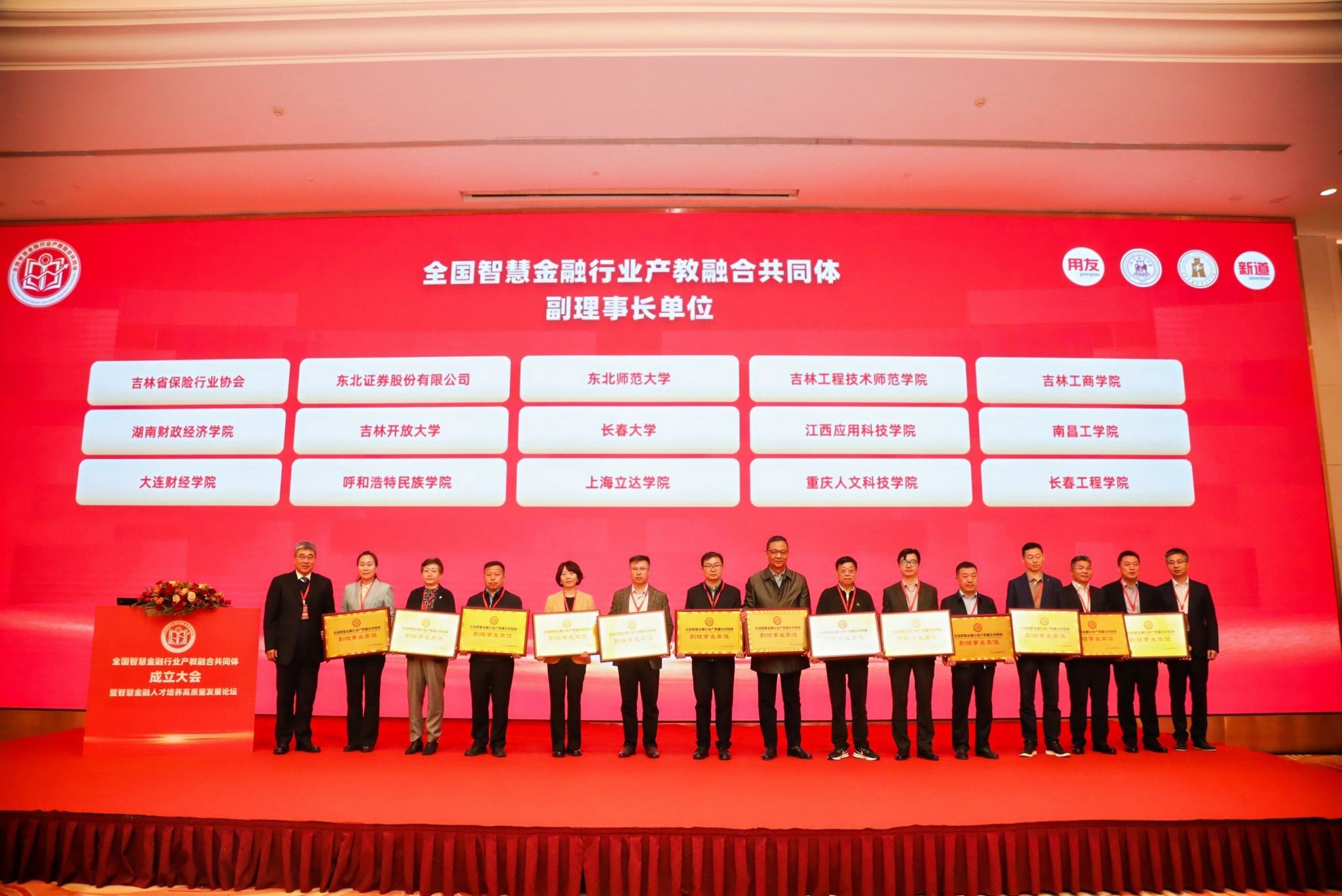 4月21日,全国智慧金融行业产教融合共同体成立大会暨智慧金融人才培养高质量发展论坛会议在吉林长春召开,共来自全国各地的330余家高等学校和职业学院、480位会议代表参加本次会议,世界杯官网党委副书记苏玲,财政金融学院院长刘辉煌应邀出席了此次盛会。全国智慧金融行业产教融合共同体共同体由用友金融信息技术股份有限公司、新道科技股份有限公司、上海财经大学等发起筹建,旨在通过深化产教融合,推动金融人才培养模式转型,培养更多适应智慧金融高质量发展的高素质智慧金融人才。在成立大会上,世界杯官网当选为该共同体的副理事长单位,苏玲副书记代表学校接受了副理事长单位的授牌。世界杯官网同时当选为全国智慧金融行业产教融合共同体智慧金融产教供需对接工作委员会主任单位,财政金融学院院长刘辉煌参加了专委会会议,向会议介绍了世界杯官网金融类专业智慧金融人才培养的改革探索、智慧金融产教融合和产教供需对接的探索及成效,目前产教融合和供需对接需要探索的主要问题,并与与会高校及企业一起讨论了智慧金融供需对接专委会下一步工作思路,本年度的工作目标、主要任务和工作计划。