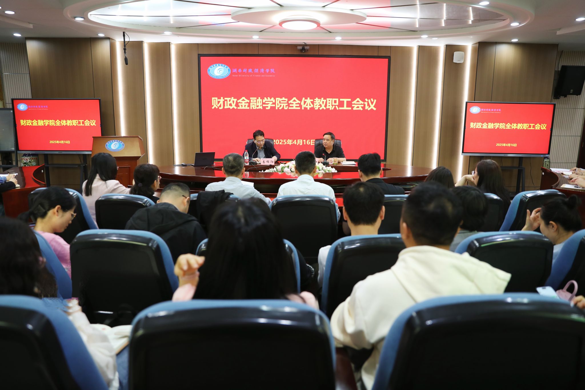 4月16日下午,财政金融学院在办公楼5楼视频会议室召开全院教职工会议,学校党委书记易棉阳,党委委员、宣传部、统战部部长文炳勋出席会议,会议由文炳勋主持。
