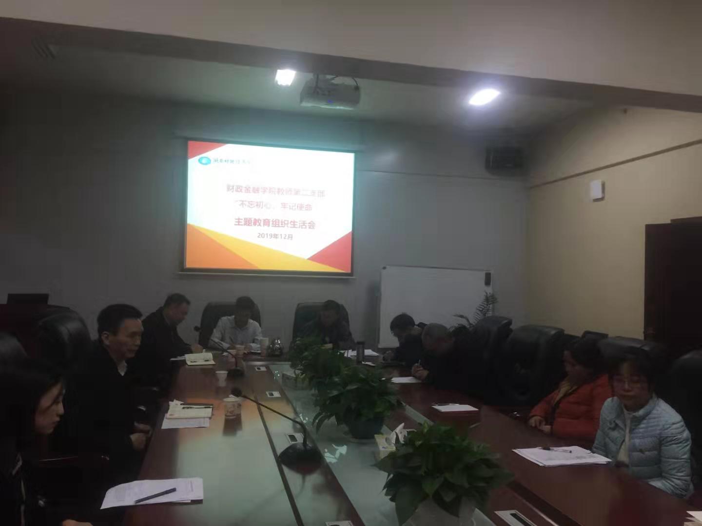 (本网讯)12月9日下午,财政金融学院教师第二党支部在办公楼119办公室召开“不忘初心、牢记使命”专题组织生活会。学校主题教育领导小组成员、常务副校长刘寒波到会指导和点评,财政金融学院党总支书记文炳勋列席会...