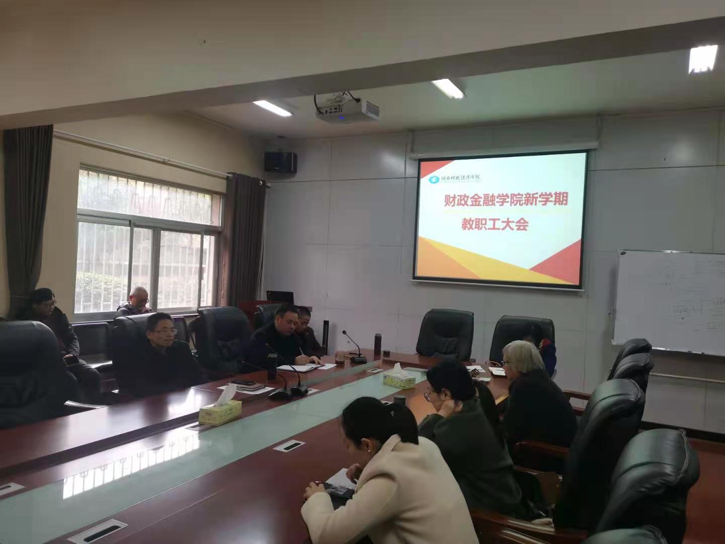 (本网讯)为更好地推进新学期学院各项工作开展,3月3日,财政金融学院在办公楼119会议室召开新学期工作会议。会议由院长刘辉煌主持,学院全体教职员工参加。会议现场会上,副院长罗四维对学院2020年度开展的省级精品...