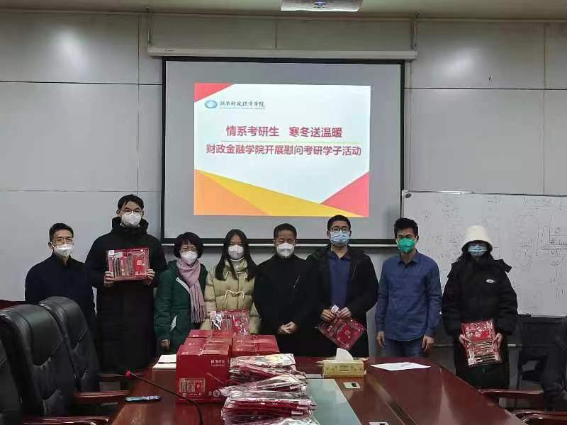 (本网讯)为鼓励考生积极迎考,增强备考信心,12月16日,财政金融学院在主校区119会议室开展“情系考研生,寒冬送温暖”慰问考研学子活动。学院院长刘辉煌、党委书记肖燕飞、党委副书记何桂基、副院长李艳丰、2023届...