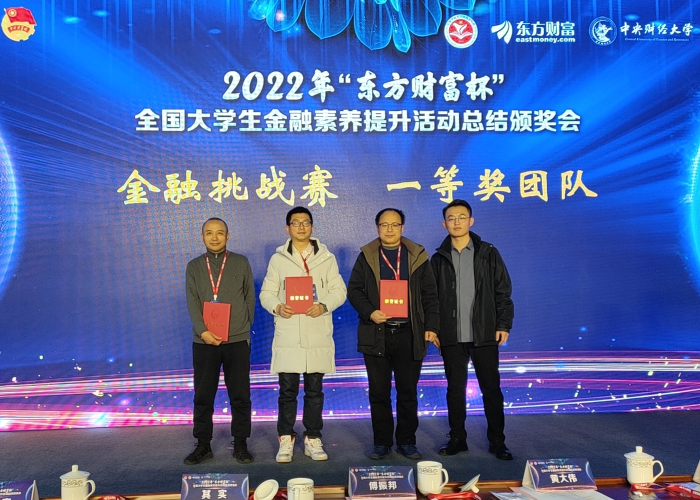 (本网讯)近日,2022年“东方财富杯”全国大学生金融素养提升活动总结颁奖会在中央财经大学举行,世界杯官网17支队伍斩获多个奖项,指导老师杨勇兵作为获奖团队代表受邀参会。世界杯官网代表(右二)在颁奖会上领奖本届活动分为金...
