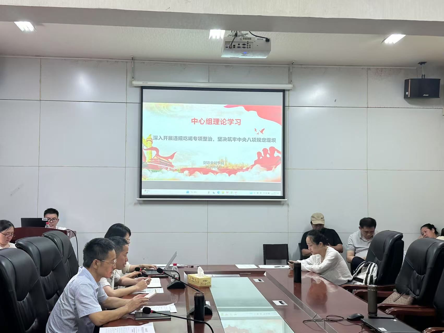 为深入贯彻中央八项规定精神学习教育,进一步强化党员干部纪律规矩意识,6月11日,财政金融学院在119会议室召开中心组扩大会议。纠治违规吃喝是一项系统工程,要拧紧思想“阀门”、筑牢作风“堤坝”,更要打出治理“重拳”、扎紧制度“篱笆”。肖燕飞书记强调,学院党委要落实主体责任、监督责任;组织学院集中开展警示教育,用“身边事”教育“身边人”,让党员、干部受警醒、知敬畏、守底线。全体教师要严格要求自身,通过反面案例警醒自身,...