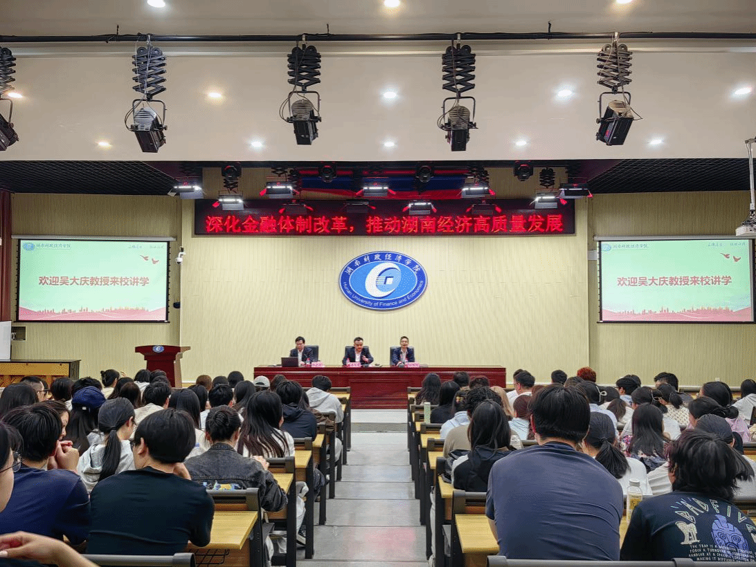 2025年10月13日15:30,财政金融学院于第二教学楼2J03报告厅举行校外兼职专家聘任仪式,并举办以“深化金融体制改革,推动湖南经济高质量发展”为主题的学术讲座。校党委委员、副校长潘爱民、财政金融学院院长刘辉煌、财政金融学院副院长黄华军出席会议。会议现场 俞英琦、骆宇琦/摄本次会议由财政金融学院院长刘辉煌主持,首先他对吴大庆教授进行了介绍。随后,潘爱民副校长宣布了学校的聘请决定,为吴大庆教授颁发聘任证书并发表讲话,...