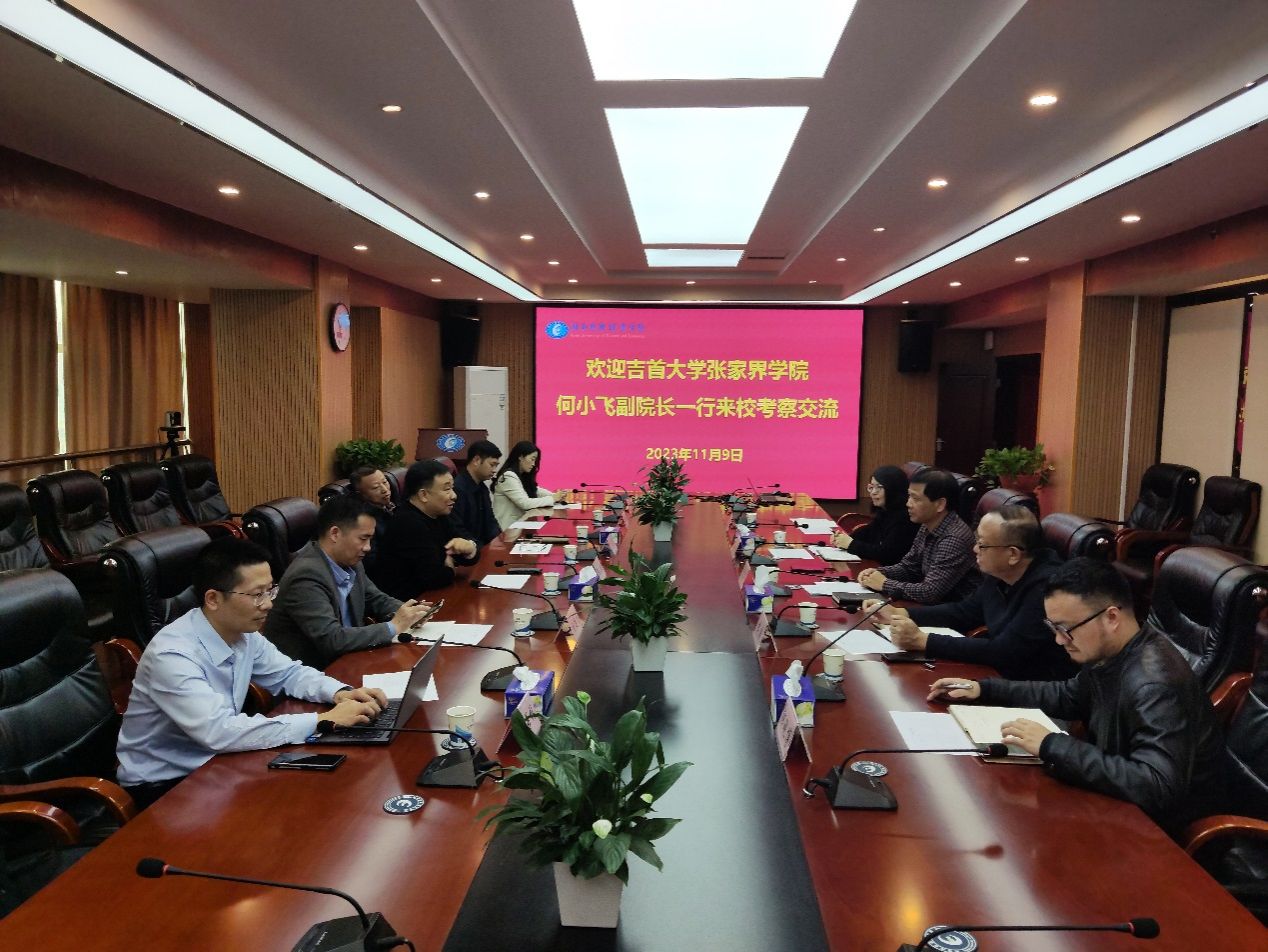 11月9日上午,吉首大学张家界学院副院长何小飞率该校教学科研处处长刘建东、继续教育学院院长卜爱华一行6人来世界杯官网考察交流。世界杯官网教务处处长李茂平热情接待了何小飞一行,继续教育学院院长李涛、教务处副处长汪小英及相关工作人员等参加了交流会。