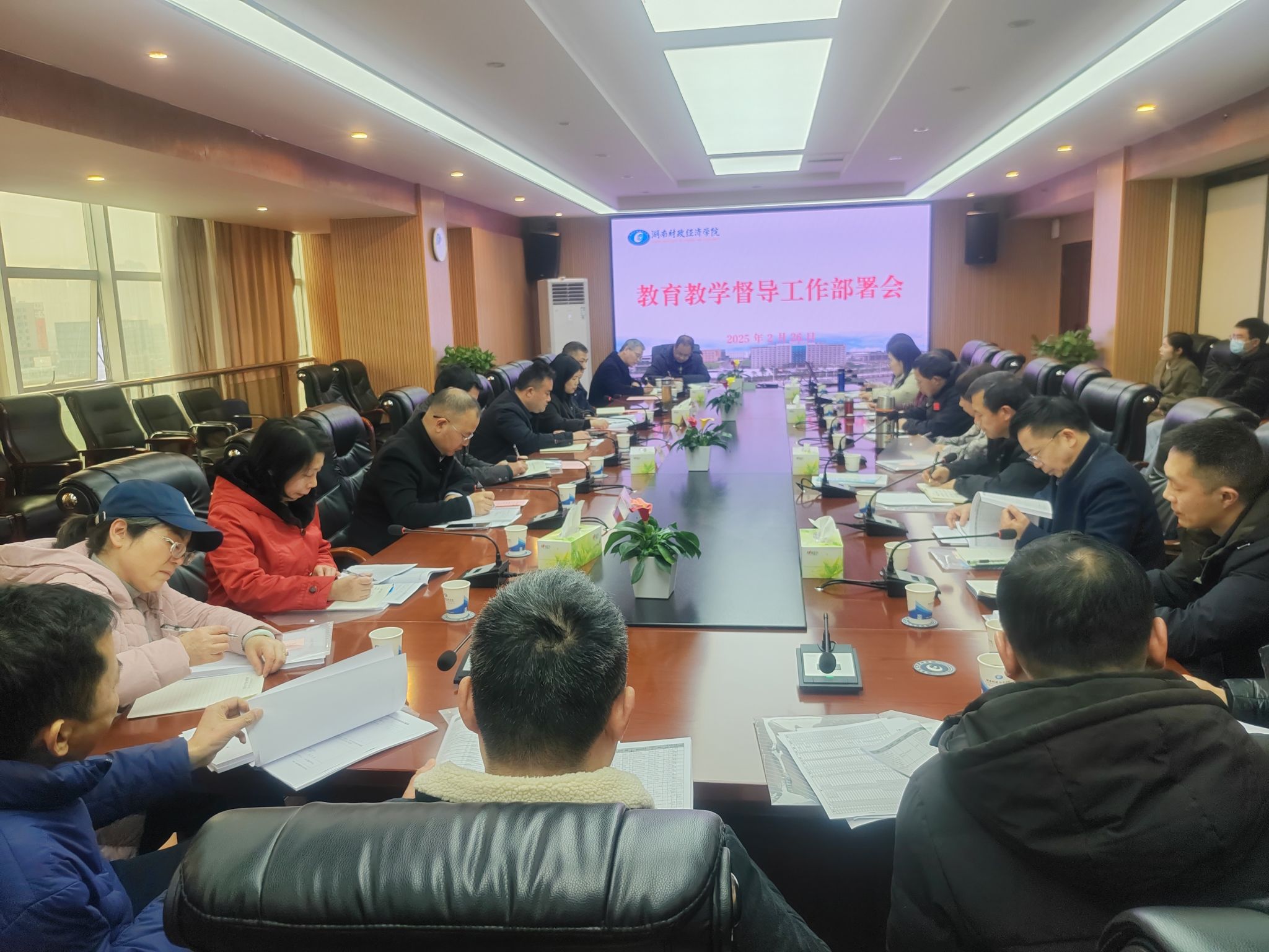 2月26日下午,学校在办公楼715会议室召开2025年春季学期教育教学督导工作部署会议。教育教学督导团全体成员、教务处、教学质量监控与评估中心负责人参加会议。会议由教学质量监控与评估中心主任邓永红主持,副校长潘爱民出席会议并讲话。