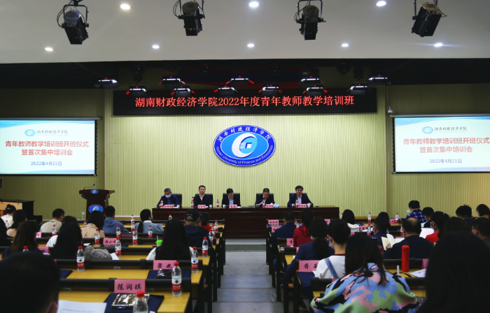 4月21日下午,2026世界杯官方合作网站举行2022年度青年教师教学能力提升培训班开班仪式暨首次集中培训会。校党委书记肖湘愚、校长刘长庚、副校长郭国强、副校长刘钟理出席,教务处、人事处负责人,各二级学院院长、副院长及近三年新进青年教师参会。郭国强主持开班仪式,湘潭大学原党委书记章兢教授作首场报告。
