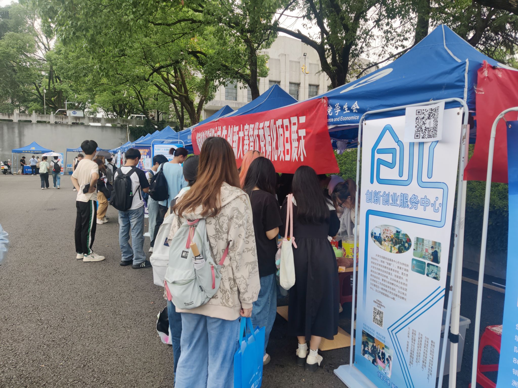 活动当天,就业创业中心精心布置了多个展位,展位处人潮涌动,气氛热烈。在宣传展位上,创新创业服务中心学生干部向过往师生详细介绍了今年比赛的宗旨、参赛流程、奖项设置等信息。