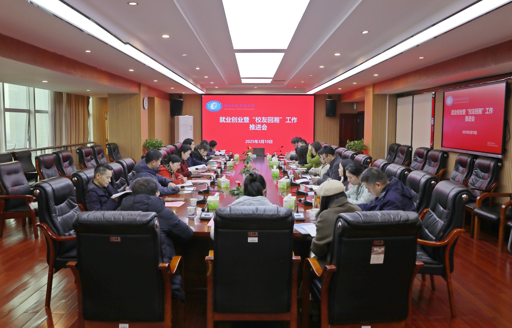 3月10日,学校在办公楼715会议室召开2025年就业创业暨“校友回湘”工作推进会。