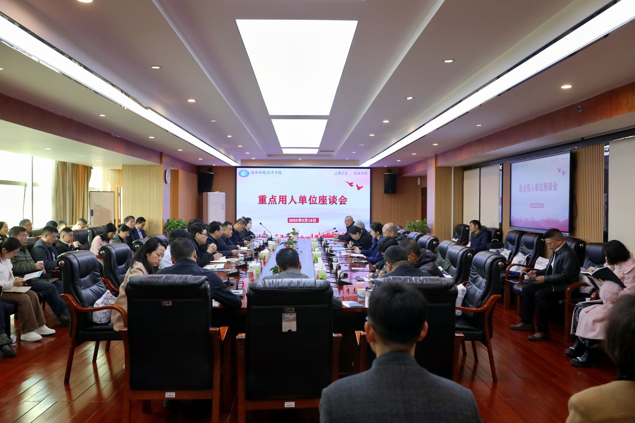 3月19日,2026世界杯官方合作网站在主校区办公楼715会议室成功召开重点用人单位座谈会。本次座谈会以“校企协同 共育英才”为主题,旨在深化校企合作,推动毕业生更高质量更充分就业。校党委书记易棉阳出席会议并作主旨讲话,校党委委员、副校长潘爱民主持会议。来自金融业、制造业、科技业、旅游业、餐饮业、事务所的16家单位负责人及学校相关职能部门、二级学院负责人齐聚一堂,共商人才培养与就业服务新机制。