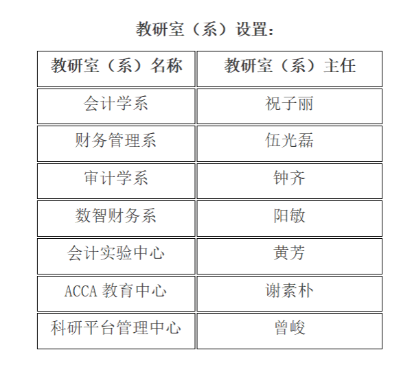 会计学院部门机构一览表