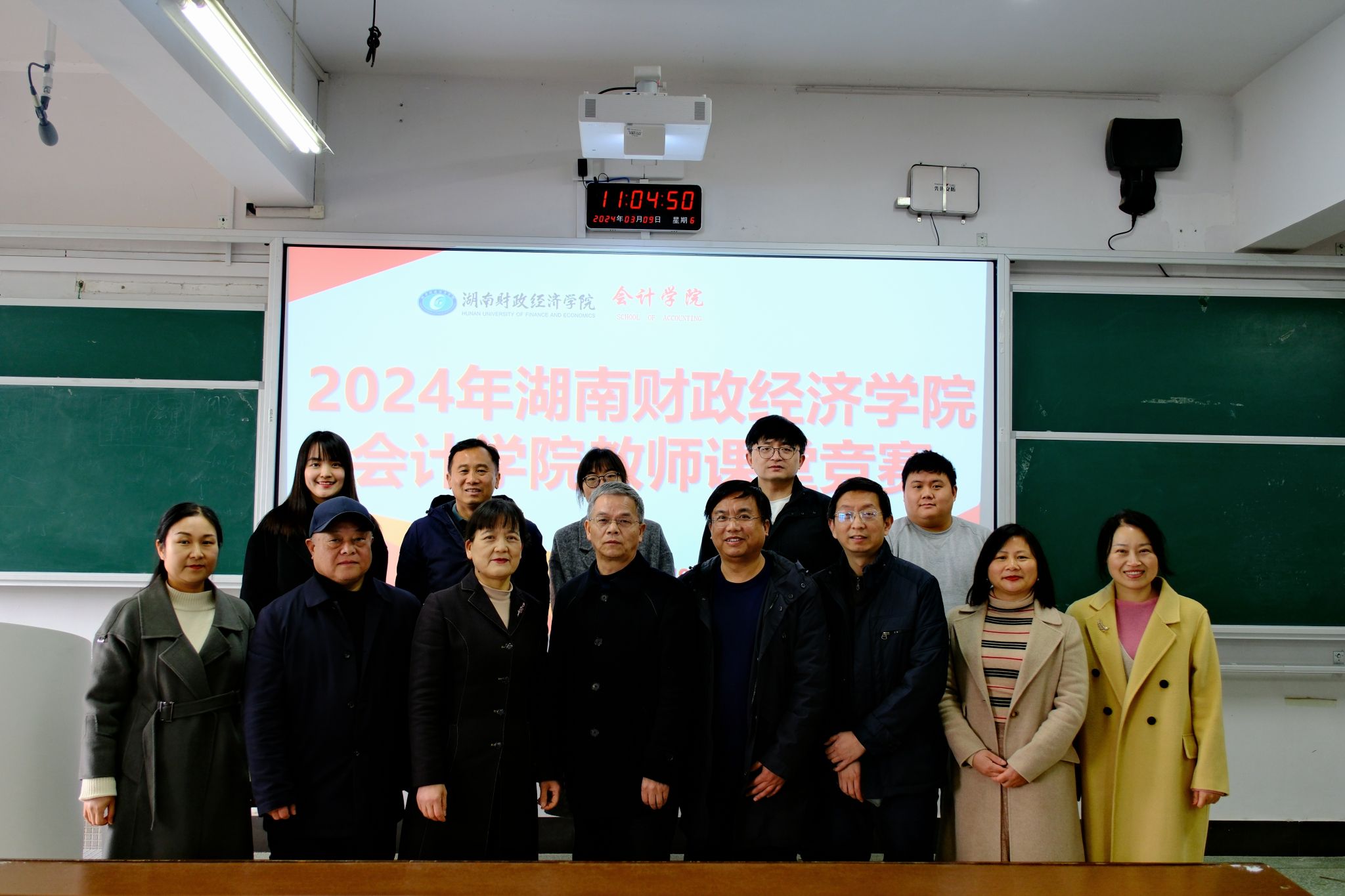 (本网讯)为深入贯彻落实立德树人根本任务,进一步推动高等教育教学改革创新,提升教师教学水平和育人能力,3月9日上午,会计学院在3108教室举办了2024年湖南省普通高校教师课堂教学竞赛校内初赛。来自会计学院各系的13名教师同台竞技、各展所长,院领导、教授及各系中心主任担任评委,对参赛教师进行评分指导。