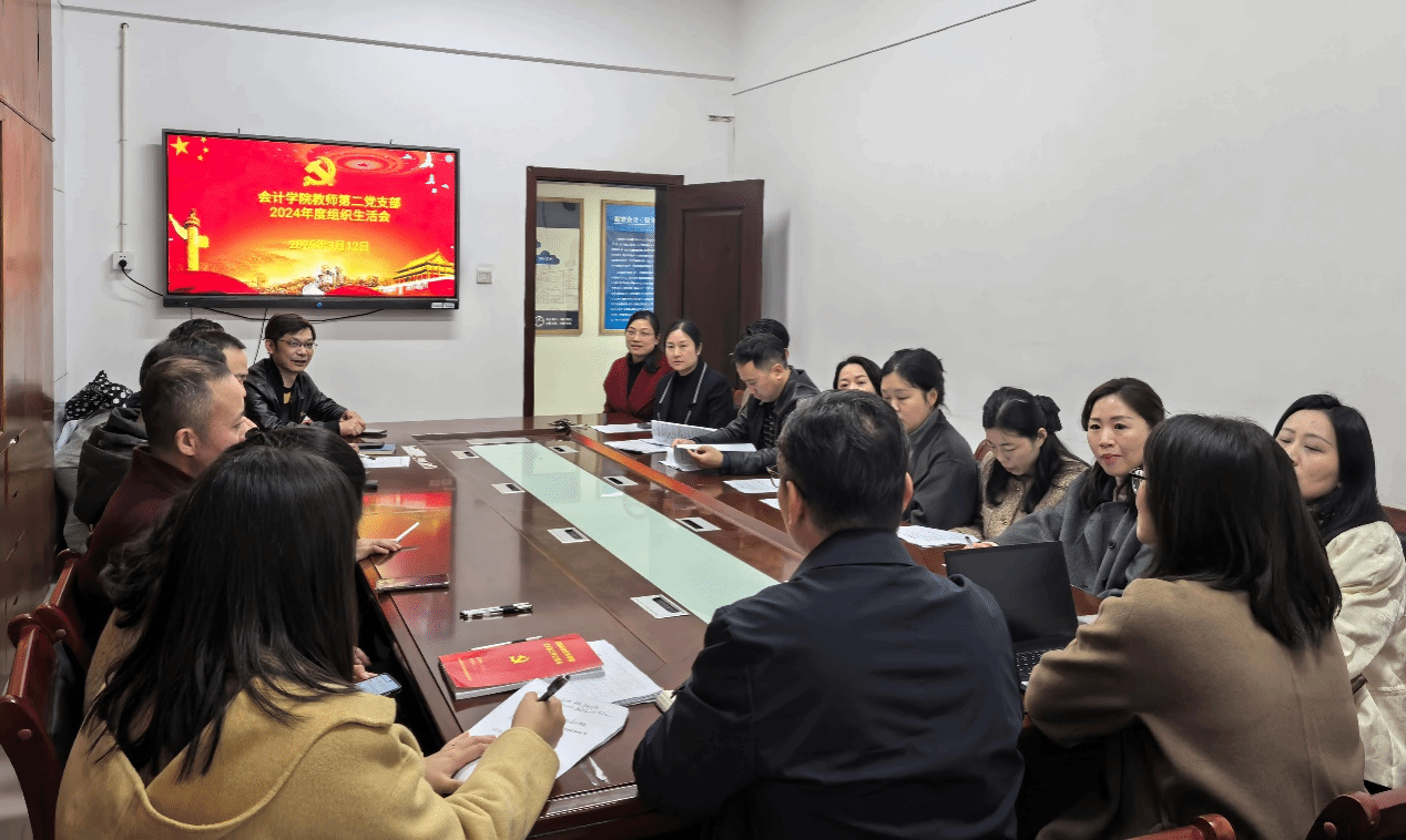 (本网讯)3月12日下午,2026世界杯官方合作网站会计学院第二教师党支部在办公楼219会议室召开了2024年度基层党组织组织生活会暨民主评议党员大会,支部全体党员准时参加会议,会议由支部书记粟金霞主持,会计学院潘彬院长到会指导。