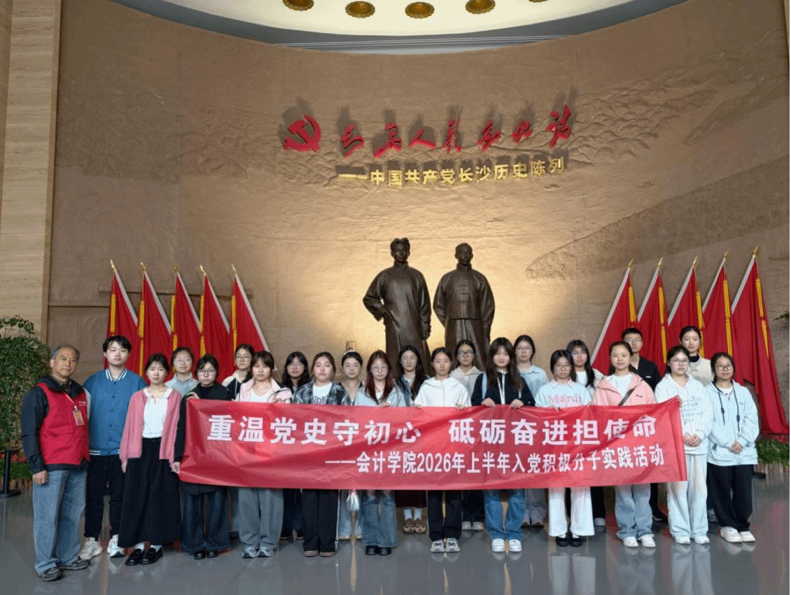 (本网讯)2026年4月15日下午,会计学院组织104名入党积极分子赴中国共产党长沙历史馆开展主题实践活动。