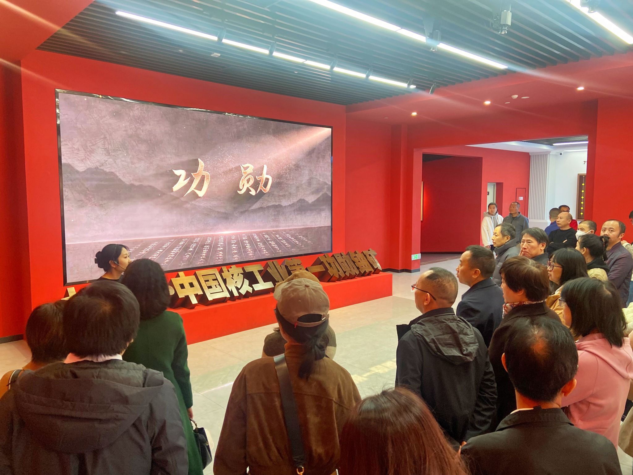 11月19日上午10点,全体党员来到711矿工业文化实践教育基地,在讲解员的带领下,全体党员首先观看了纪录片《功勋》。纪录片讲述了1955年郴县许家洞金银寨发现铀矿石,来自全国各地的数千名干部、技术人员、工人被秘密调往许家洞,不畏艰苦为中国第一颗原子弹的研制提供合格铀原料的故事。随后依次参观了“两弹一星展厅”、“爱国主义广场”、“原711矿人防工事”等。党员们认真聆听,驻足观看每件展品、每张图片,亲身感受711矿革命先辈大无畏的革命精神。