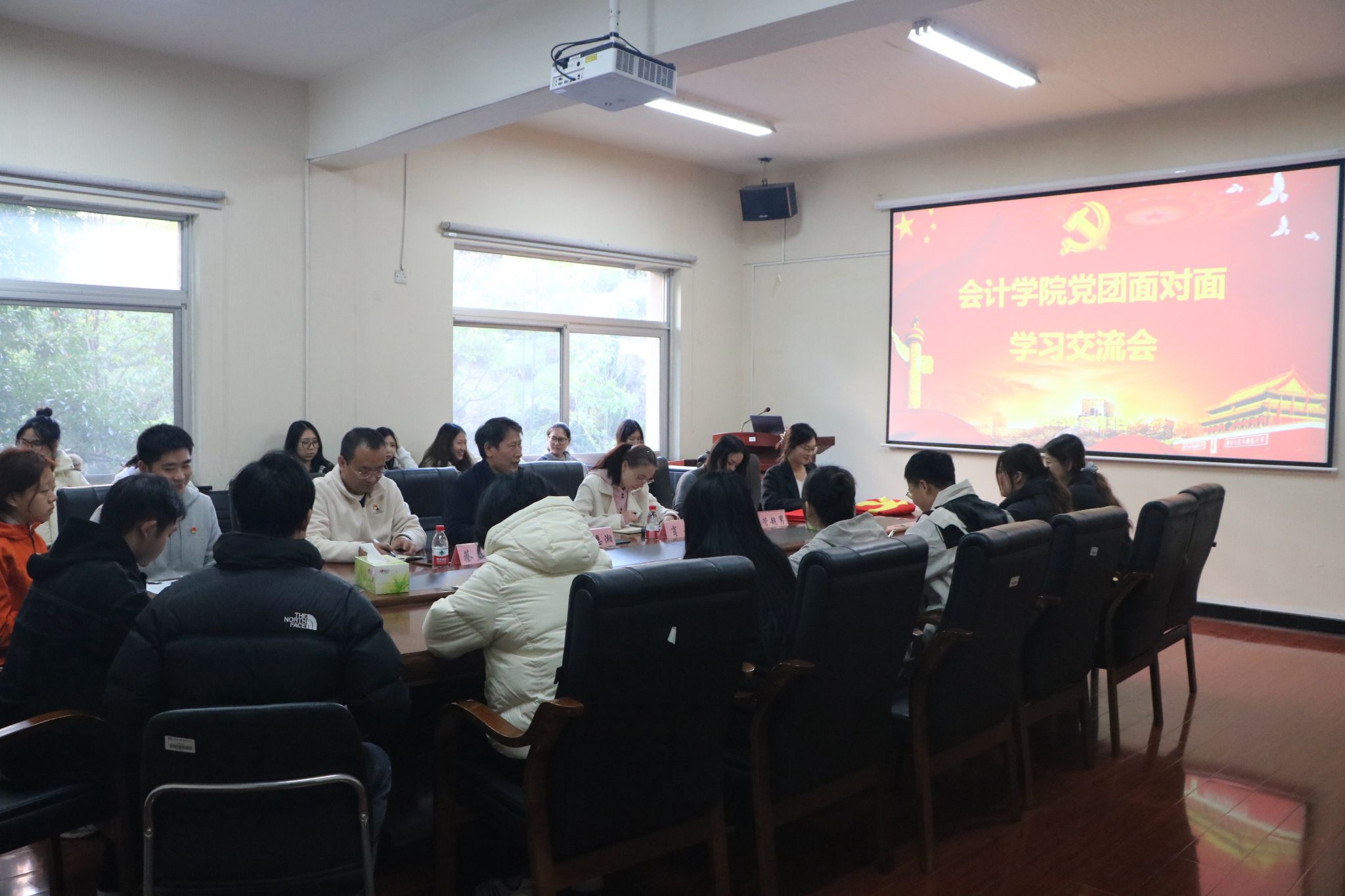 (本网讯)2025年12月3日,会计学院以“党建带团建、团建促党建”为主题的“党团面对面”学习交流会在办公楼215会议室顺利举行,30余名师生党员、团员共同进行了学习交流。