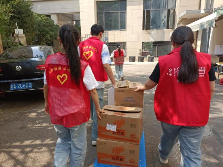 志愿者在搬运慰问物资 孙艺铭摄