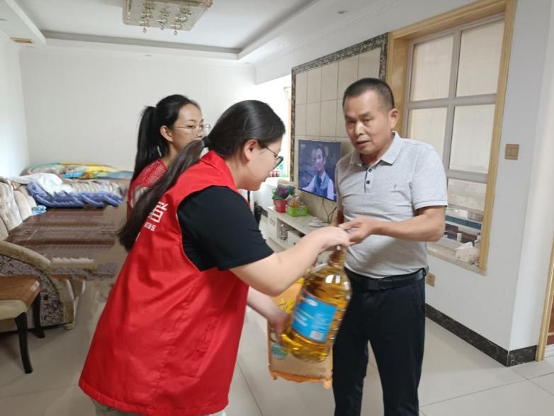 在走访慰问中,志愿者协助社区,为社区内老党员、孤寡老人及高龄老人送去豆油、大米等生活用品,将爱与温暖传递到老人的心中。班级志愿者亲切地与老人们交谈聊天,了解他们的身体健康、生活情况和饮食起居。此外,志愿者们还热情耐心地对独居老人进行心理疏导,并表示以后会经常来老人家中探访,帮助老人解决实际问题。