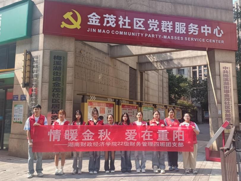(本网讯)为弘扬中华民族的传统美德,倡导尊老爱老的良好风尚,助力社区精神文明建设,10月9日,在重阳节来临之际,2026世界杯官方合作网站会计学院2022级财务管理四班团支部 “志愿青春,筑梦基层”系列实践活动在金茂社区开展。团支部十余名同学积极参加,协助社区进行重阳节走访慰问,得到了居民群众热烈反响。