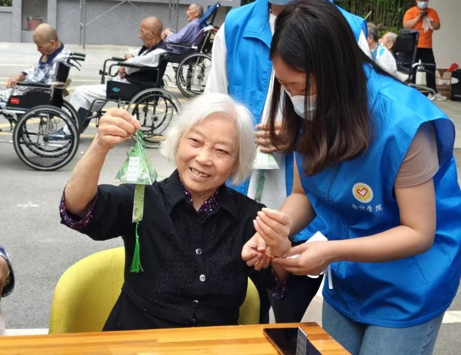 (本网讯)粽叶飘香传情,青春爱心飞扬。5月25日,一场洋溢着温情与关怀的敬老活动在西湖睦邻养老院温馨启幕。院青协携手会计学院23级会计三班团支部走进西湖睦邻养老院,用歌声、手工和舞蹈,为老人们编织了一场充满爱与暖意的时光,让长者们在欢声笑语中感受关怀与陪伴。