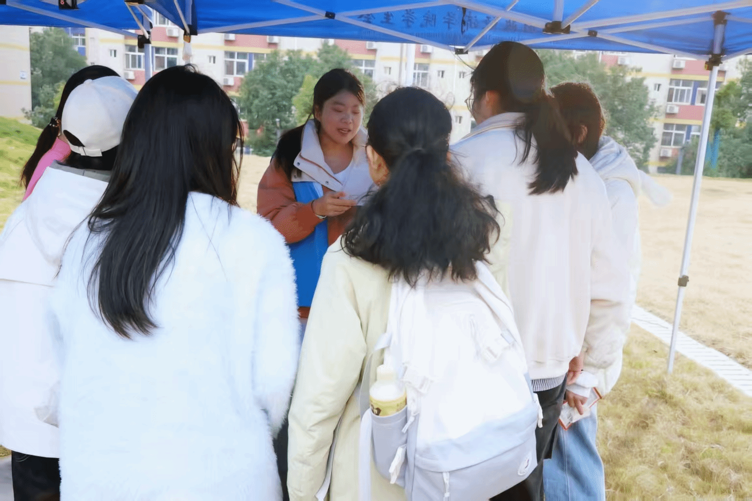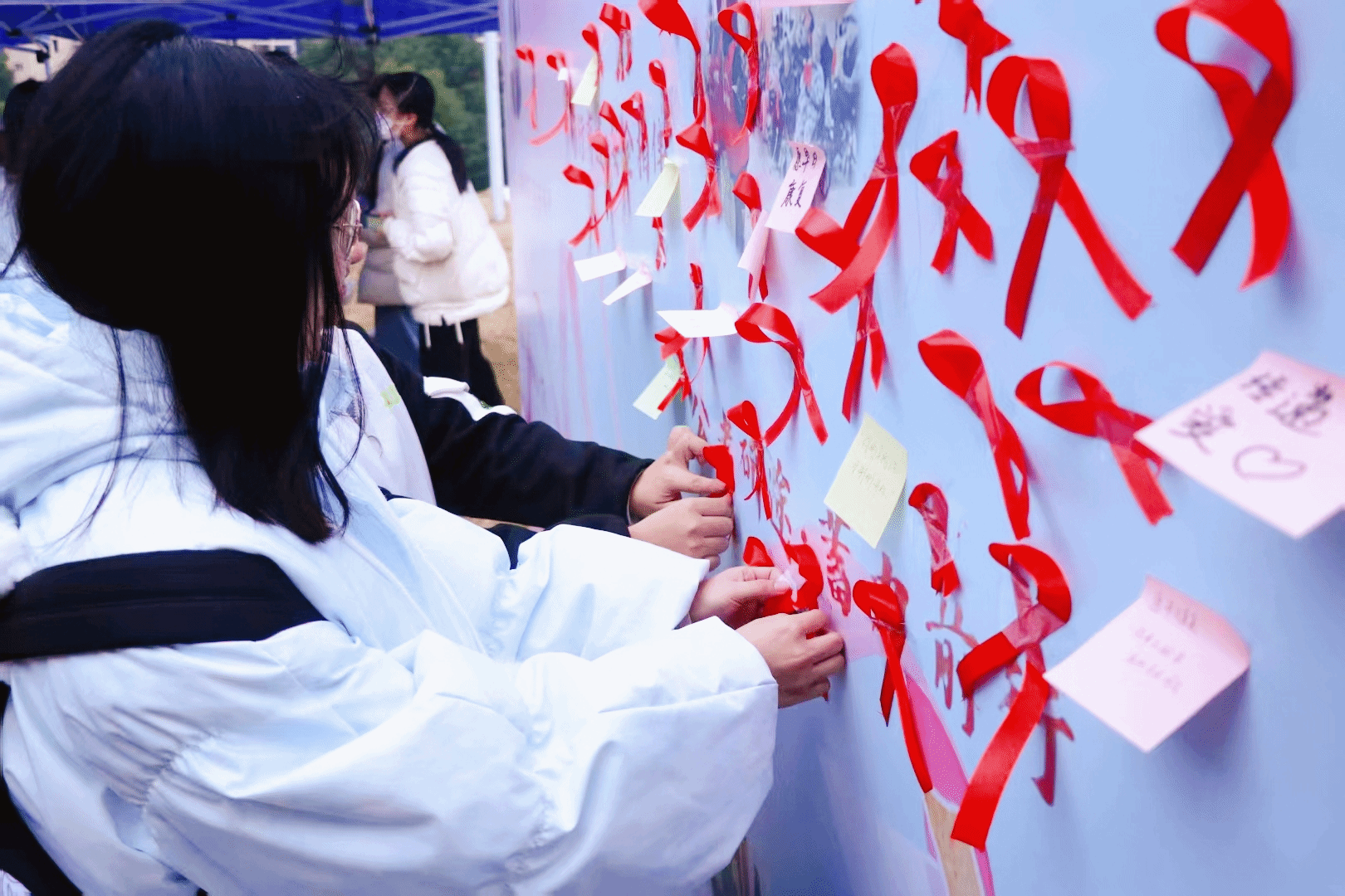 在艾滋防治宣传区,参与者通过编织红丝带、掷沙包互动游戏等方式,加深对艾滋病防控知识的了解。残疾人关爱体验区设有手语教学和协作游戏。知识普及区围绕国家宪法日与交通安全日,以趣味答题、情景模拟等形式强化法律与交通意识。考公考研赋能区则通过“逐梦墙”留言、励志寄语分享,为备考学生提供精神支持。