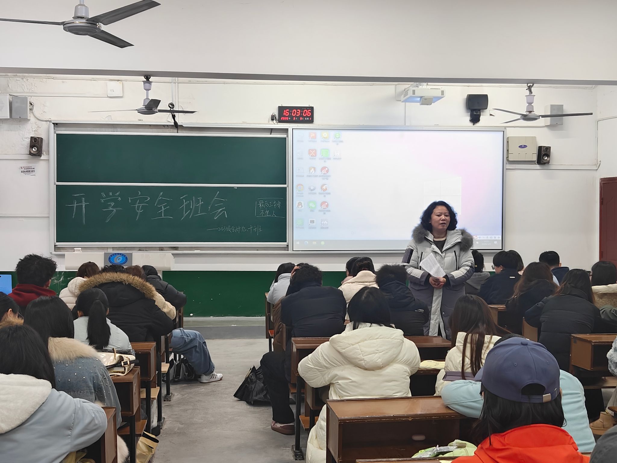 (本网讯)春启新程,安全同行,为帮助同学们快速适应新学期学习生活,明确大三关键阶段的发展方向,强化安全防范意识,2023级会计7-12班、23级高职班于2026年3月9-10日在一教1101教室顺利召开“开学安全班会”。本次班会由辅导员刘燕主持,2023级会计7-12班、23级高职班全体同学参会,围绕安全防护、学业安排、就业规划三大核心内容展开深入交流与指导。