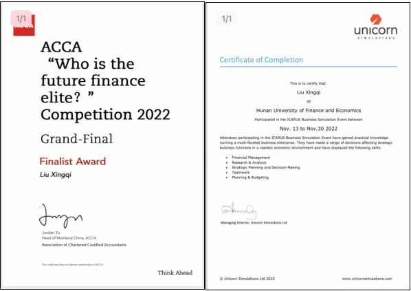 ACCA全国大学生财智精英挑战赛比赛证书)
