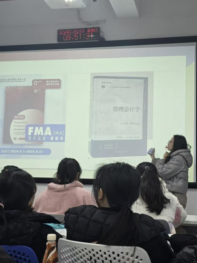 傅予老师即将承担2024级ACCA班下学期的管理会计(MANAGEMENT ACCOUNTING)课程,作为经验丰富的 ACCA 资深讲师为同学们进行了细致的课程解读并制定合理的预习计划。傅老师指出,成本分析与预算规划是 MA 课程的核心内容,需要同学们深入理解并熟练掌握相关的计算方法和分析技巧。建立知识框架和定期复习也是提高学习效率的重要方法,傅老师通过实际案例和生动讲解,让同学们对课程内容有了更清晰的认识和理解。